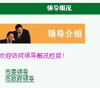 手机用户登录“中国宜春”WAP网站首页,点击首页右上方的“领导概况”栏目,进入领导介绍页面,可查看领导的资料及分工详细。
