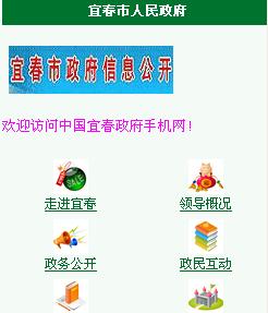 直接在手机浏览器地址栏中输入wap网址http://wap.yichun.gov.cn,“中国宜春”无线门户示例站点首页如下图所示: